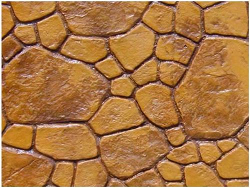 2、二次著色:脫模粉和強化料的配套使用,能對壓模地坪起到二次著色和養(yǎng)護的作用。通過強化料能賦予壓模地坪不同顏色,產(chǎn)生多種復(fù)合效果。 在混凝土硬化干燥后,用水沖去突出部位上的脫模粉,在較深的部位多保留些顏色,這樣二次著色后壓模地坪會產(chǎn)生獨特的藝術(shù)視覺,達到自然與古典相結(jié)合的立體 效果。